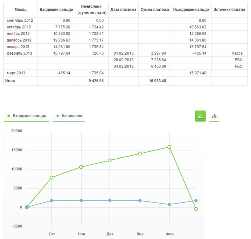 Дождитесь окончания операции, и Вам будет сформирована таблица с историей платежей. Так же Вам будет отображен график оплат.